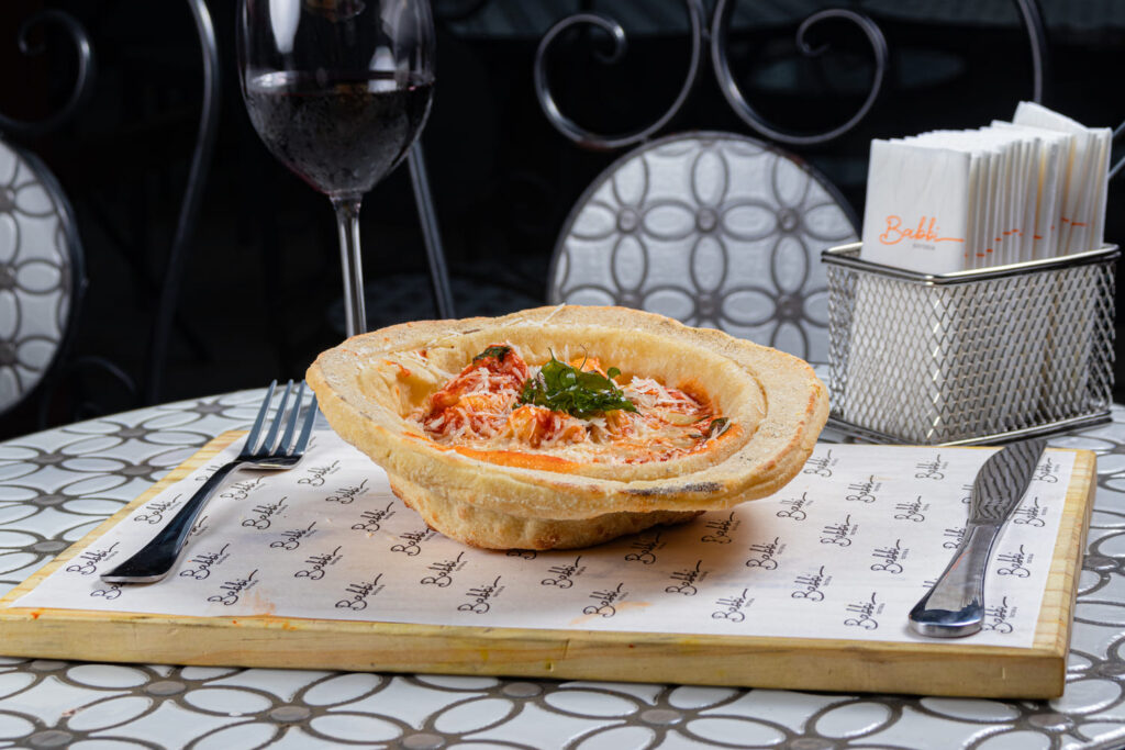 Reinterpretar receitas é uma das formas da culinária de aliar tradição e contemporaneidade. No Babbi Osteria, o “Gnocchi Babbi” é a representação única e surpreendente do poder de imaginação na cozinha italiana. A receita, que leva gnocchi de batata ao sugo san marzano, finalizado com parmesão e crispies de manjericão, é servida em uma cesta de pizza comestível, elevando a receita a um novo patamar de sofisticação e sabor.