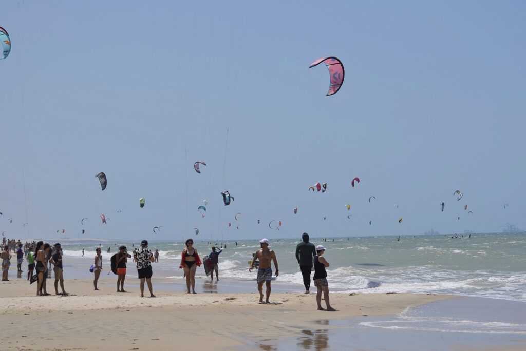 “O céu mais colorido do mundo”: foi assim que ficou a praia do Cumbuco, em Caucaia, neste domingo (24), durante a Kiteparade 2023. A cidade cearense, meca do kitesurf, foi palco, mais uma vez, do maior desfile da modalidade do planeta, promovido pelo Kite for the Ocean, do movimento Winds for Future.