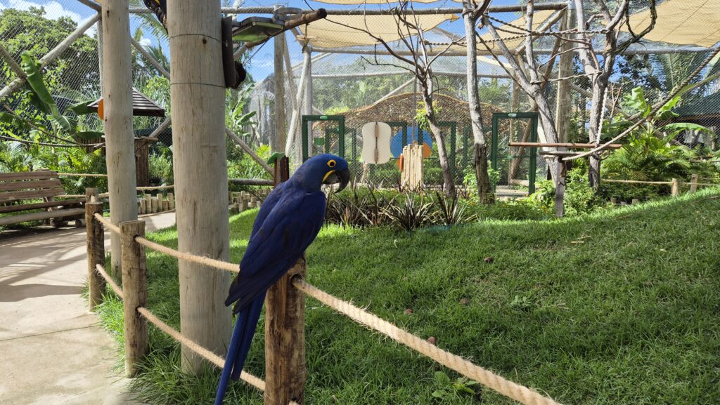 Os visitantes também podem se divertir no Anfiteatro Soldadinho do Araripe, que oferece uma programação educativa e interativa com apresentações e peças teatrais que abordam temas de preservação ambiental. O parque propões outros espaços, como o Jardim Sonoro e das Sensações, que convidam os visitantes a explorar os sentidos e se conectar com o ambiente de forma lúdica, enquanto as Janelas da Conservação oferecem uma visão dos bastidores do parque, permitindo que todos acompanhem a rotina dos animais e as atividades de enriquecimento ambiental.