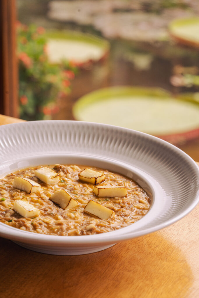 Para finalizar a experiência com chave de ouro, as sobremesas reinventam doces populares brasileiros, trazendo uma releitura e desconstrução, como os clássicos doce de leite ou um Romeo e Julieta. O menu possui à disposição o sorvete de doce de leite, acompanhado com farofa de coco fresco e paçoca de amendoim. Outra opção que enchem os olhos e traz sabor singular para o menu é a trouxinha de goiabada com sorvete de requeijão, que possui creme de cumaru e farofa de castanha.